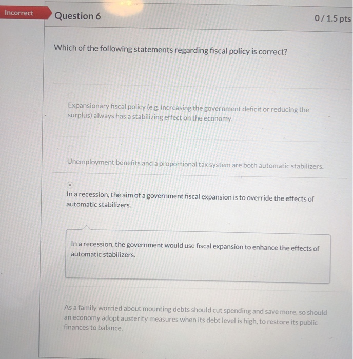 Which of the Following Statements Regarding Fiscal Policy Is Correct